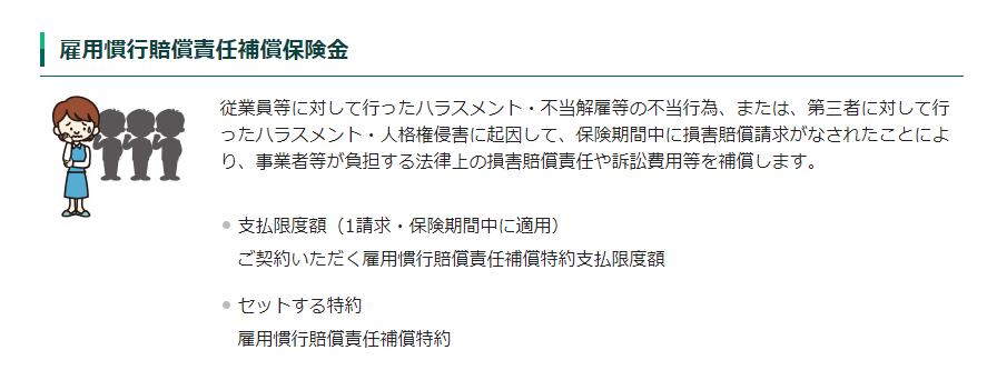 雇用慣行賠償責任補償特約〈雇用トラブルによる損害賠償に備える〉